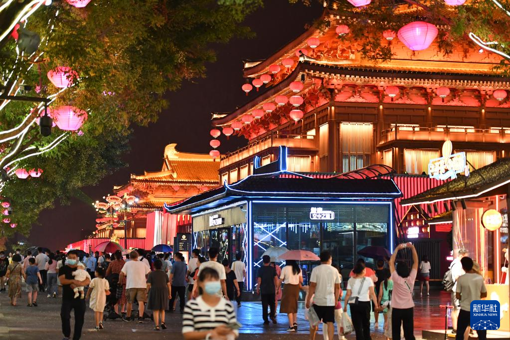 西安大唐不夜城景色(2022年6月15日摄,无人机照片)。