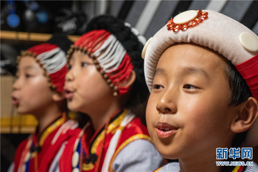 阿谷色少儿合唱团里的小朋友在演唱。新华网 刘东 摄