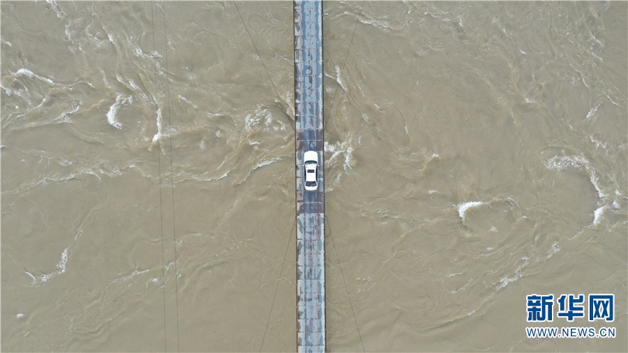 马金华的车行驶于连接怒江江东江西的桥上。新华网 李浩 摄