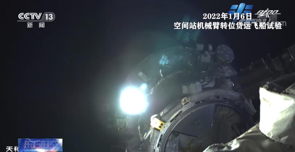 2022年1月6日6时59分,经过约47分钟的跨系统密切协同,空间站机械臂转位货运飞船试验取得圆满成功,这是我国首次利用空间站机械臂操作大型在轨飞行器进行转位试验。