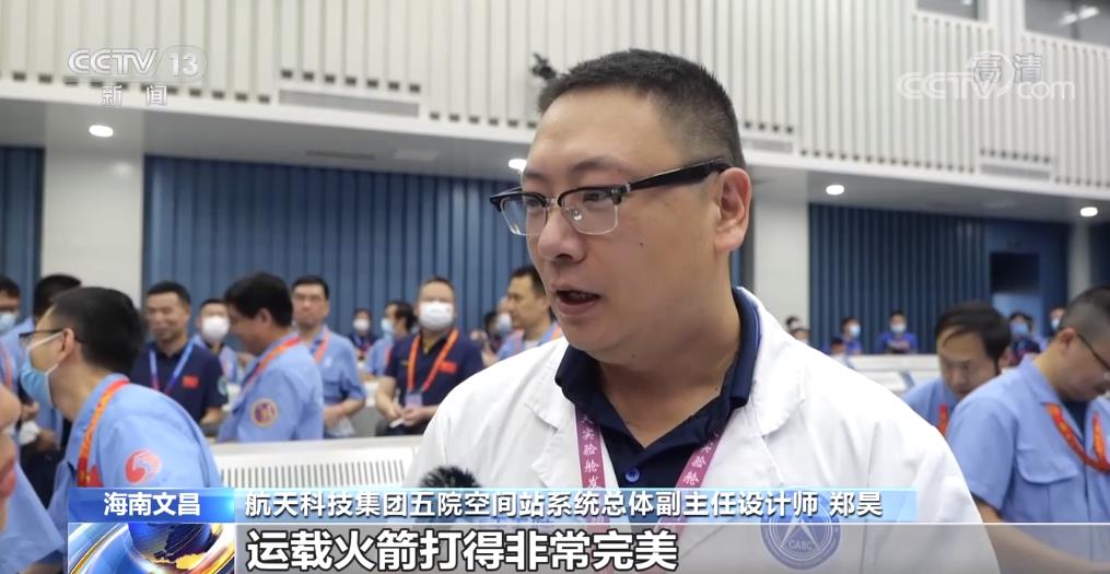 航天科技集团五院空间站系统总体副主任设计师 郑昊:运载火箭打得非常完美,我心里的一个大石头落地了。希望后面的工作一切顺利,然后明天完美的完成交会对接,完成我们空间站建造的重要一步。