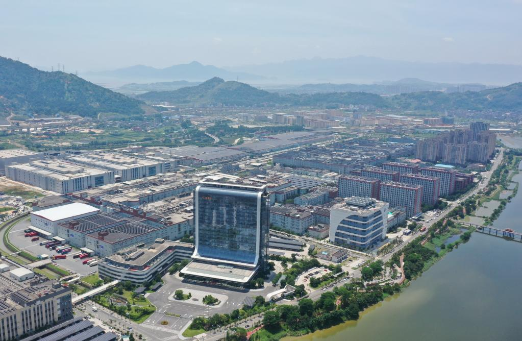宁德时代新能源科技股份有限公司科技大楼和湖东工厂一角(6月24日摄,无人机照片)。