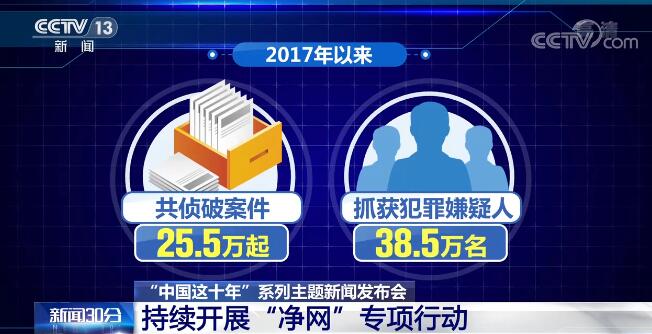 持续开展“净网”专项行动。2017年以来,共侦破案件25.5万起,抓获犯罪嫌疑人38.5万名。落实网络安全等级保护、关键信息基础设施安全保护制度,依法开展网络安全监管,切实保障关键信息基础设施、重要网络和数据安全。