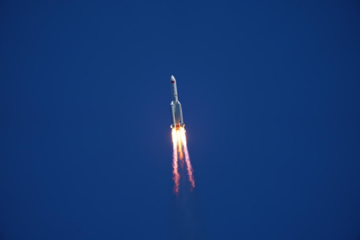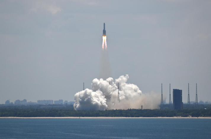 7月24日,搭载问天实验舱的长征五号B遥三运载火箭,在我国文昌航天发射场点火发射。新华社记者 李刚/摄