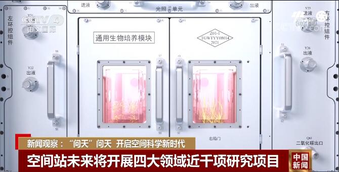 据介绍,问天实验舱部署了生命生态实验柜、生物技术实验柜、科学手套箱与低温存储柜、变重力科学实验柜、舱外暴露试验装置等科学实验设施。