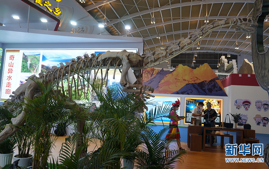 楚雄展区内3D打印的恐龙骨架(摄于7月22日)。新华网 范芳钰 摄