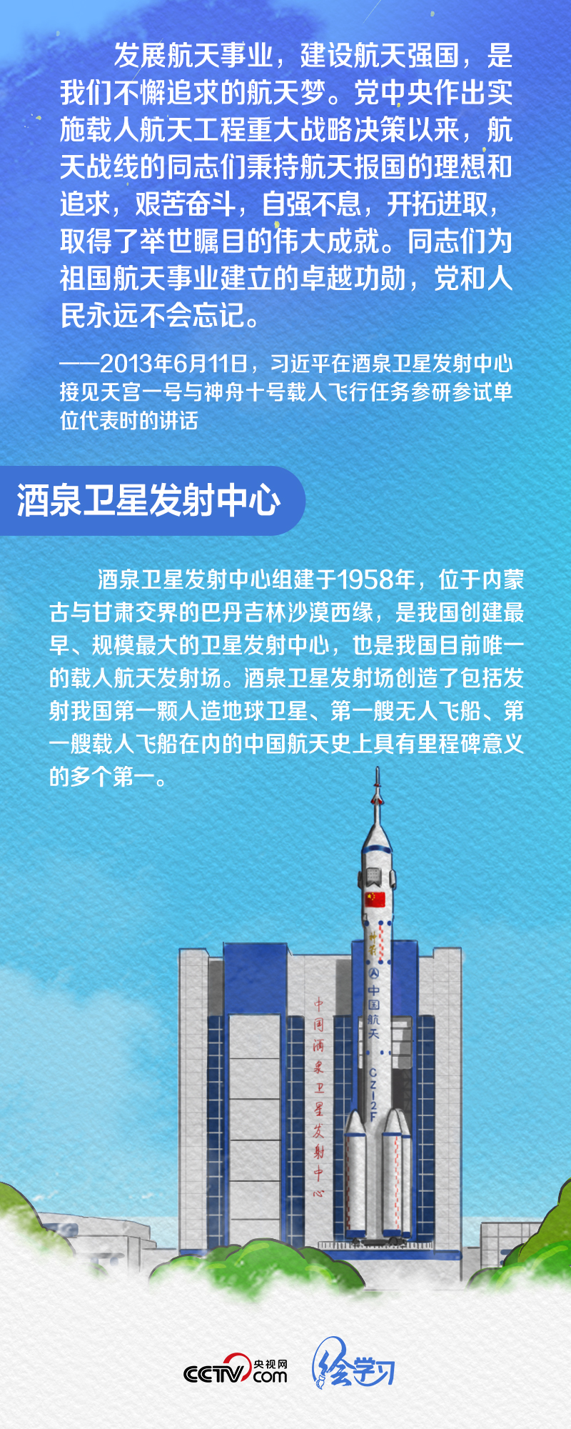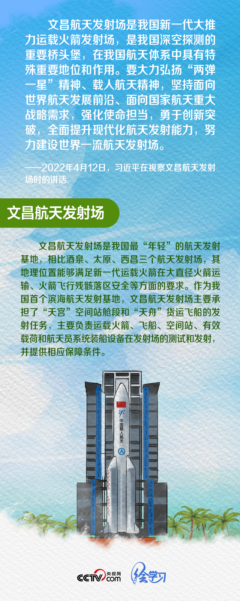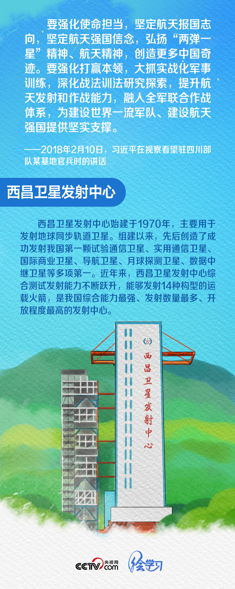 央视网《绘学习》栏目特推出手绘海报,邀您一起沿着习近平总书记的足迹,“打卡”中国航天发射场。