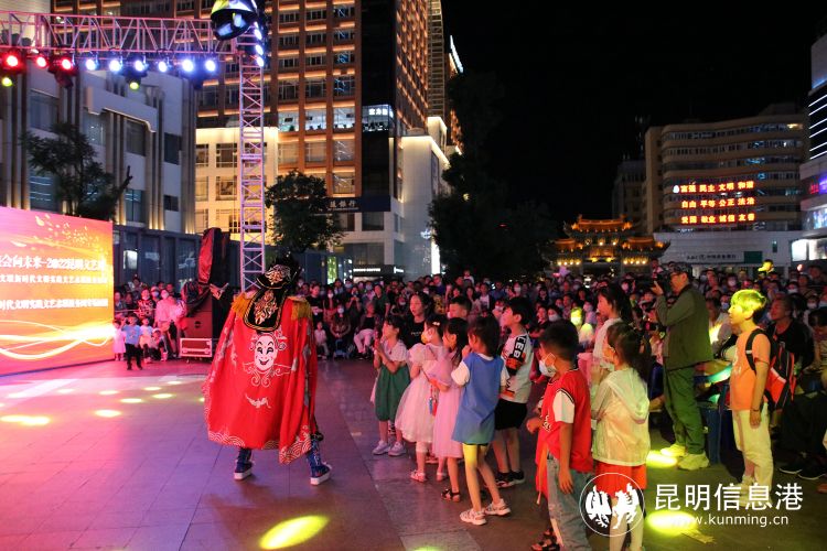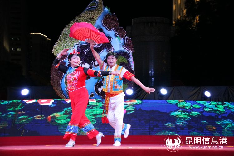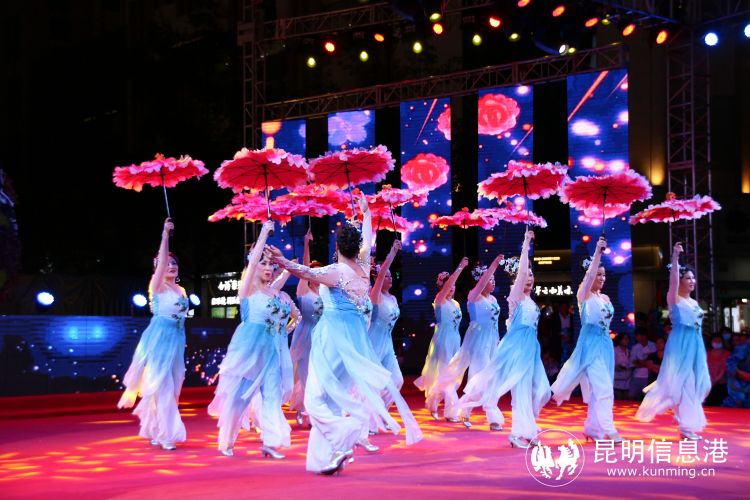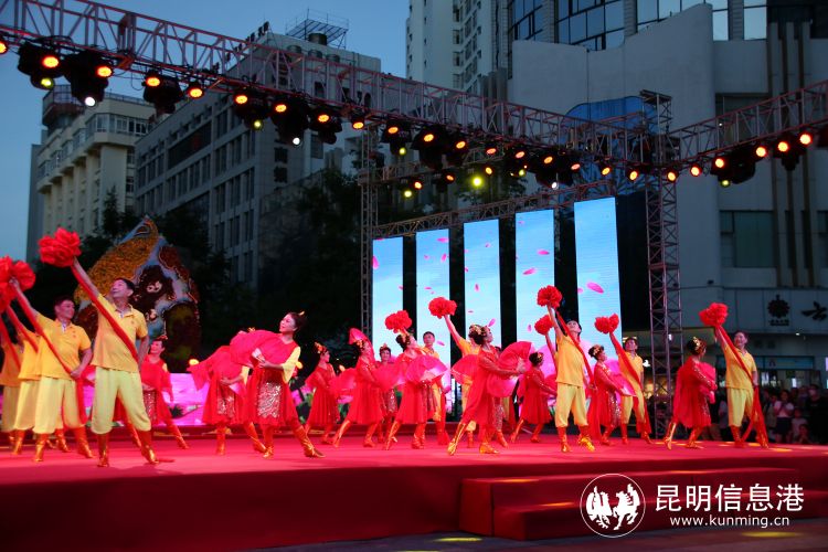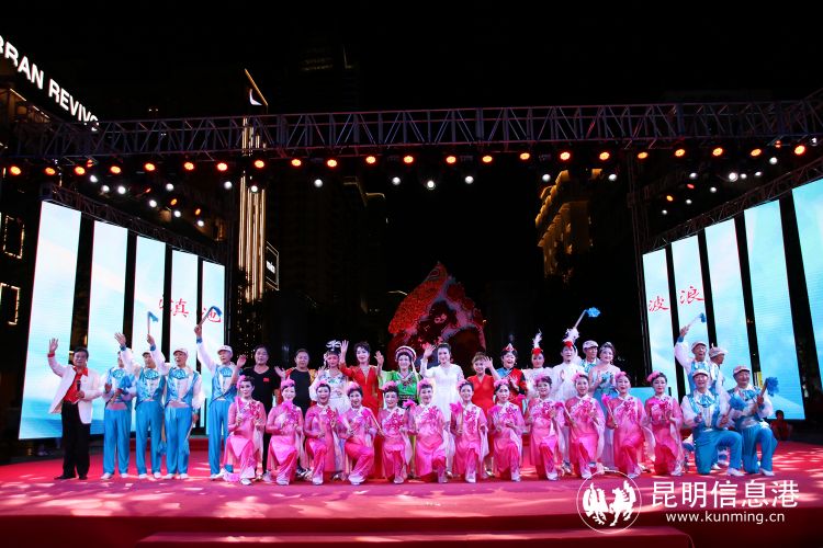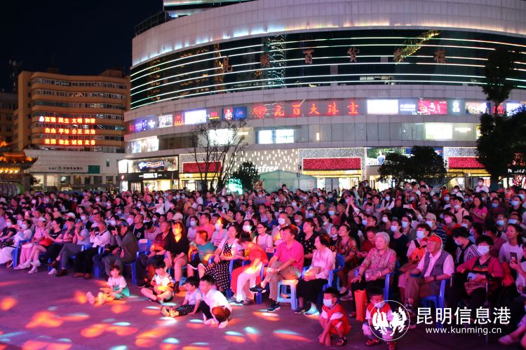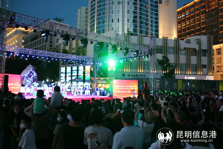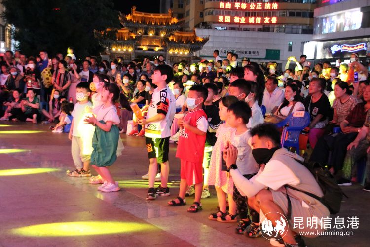 昆明信息港讯 记者甘凌菲 “滇池清、昆明兴,滇池净、昆明美”,随着热闹的歌舞声,7月25日晚,2022昆明文艺周系列演出,昆明市新时代文明实践文艺志愿服务团专场展演在南屏街广场拉开帷幕,活动虽然是在周一的晚上,但是现场仍旧气氛热烈,聚集了很多观众前来观看演出。