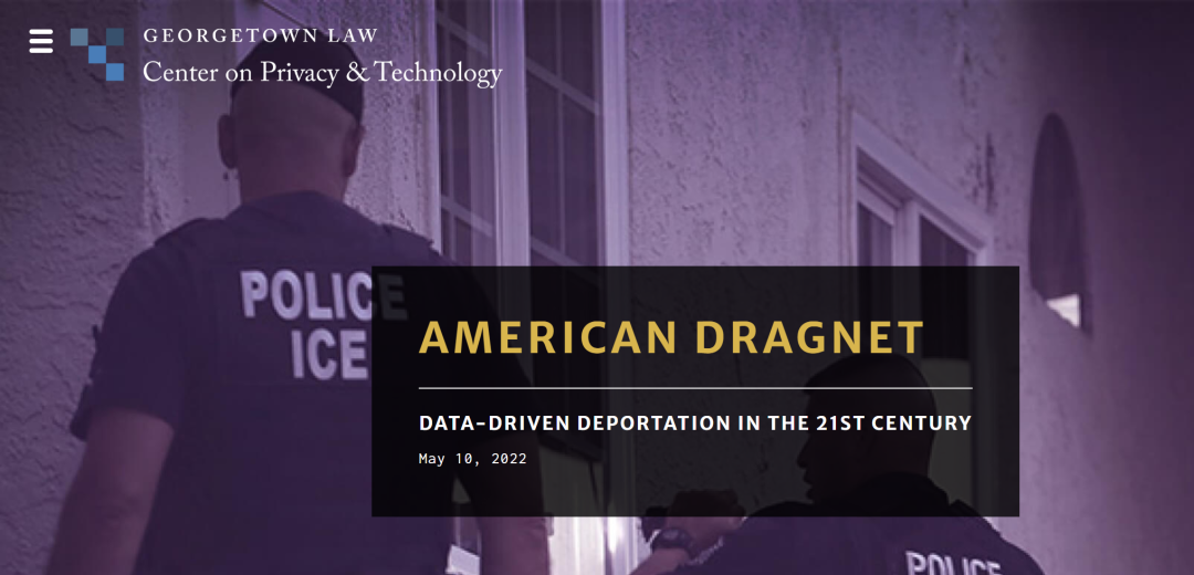 ▲ 2022年5月,美国乔治敦大学隐私与技术法律中心发布题为《美国的天罗地网:21世纪数据驱动下的驱逐》的报告,揭露了美国入境和海关执法局远远超出移民执法授权范围,逐渐发展成为一个更庞大的国内监视机构。