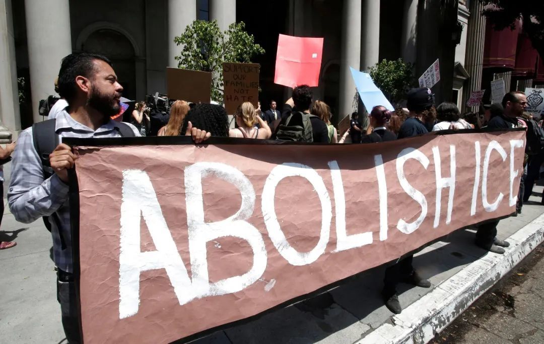 ▲ 美国入境和海关执法局的斑斑劣迹激怒了广大移民。2018年6月,示威者聚集在洛杉矶,手举“废除ICE”的横幅进行抗议。