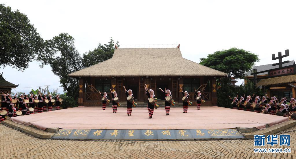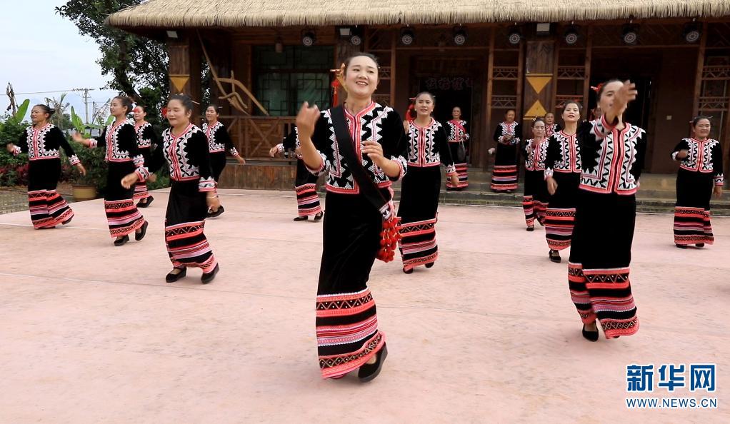 班利村群众表演队在表演拉祜族摆舞。新华网 李浩 摄