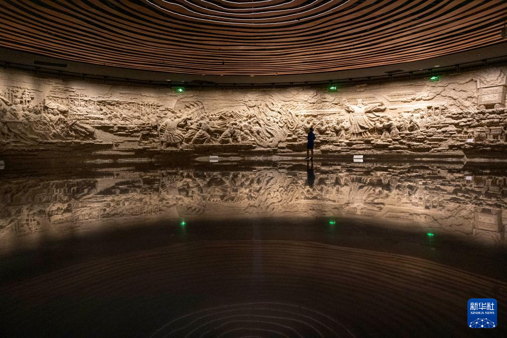 这是在郑州商都遗址博物院展厅内拍摄的环形浮雕墙(7月26日摄)。新华社记者徐嘉懿/摄
