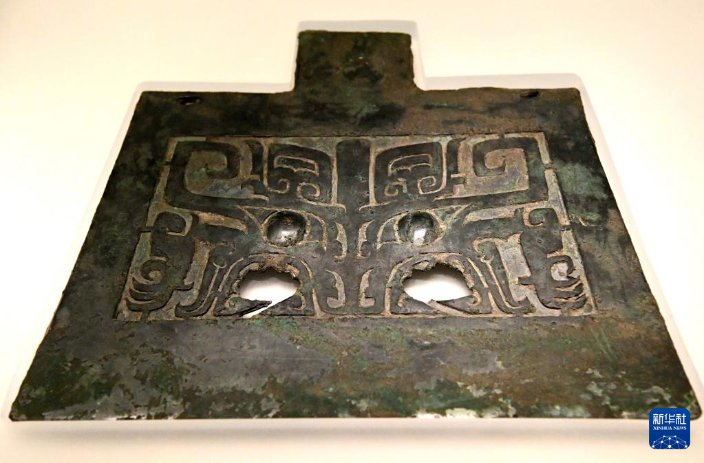 这是郑州商都遗址博物院内展出的兽面纹铜钺(7月26日摄)。新华社记者李安/摄