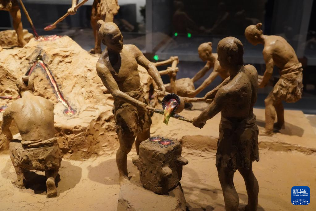 这是在郑州商都遗址博物院内拍摄的复原的制陶场景(7月26日摄)。新华社记者徐嘉懿/摄