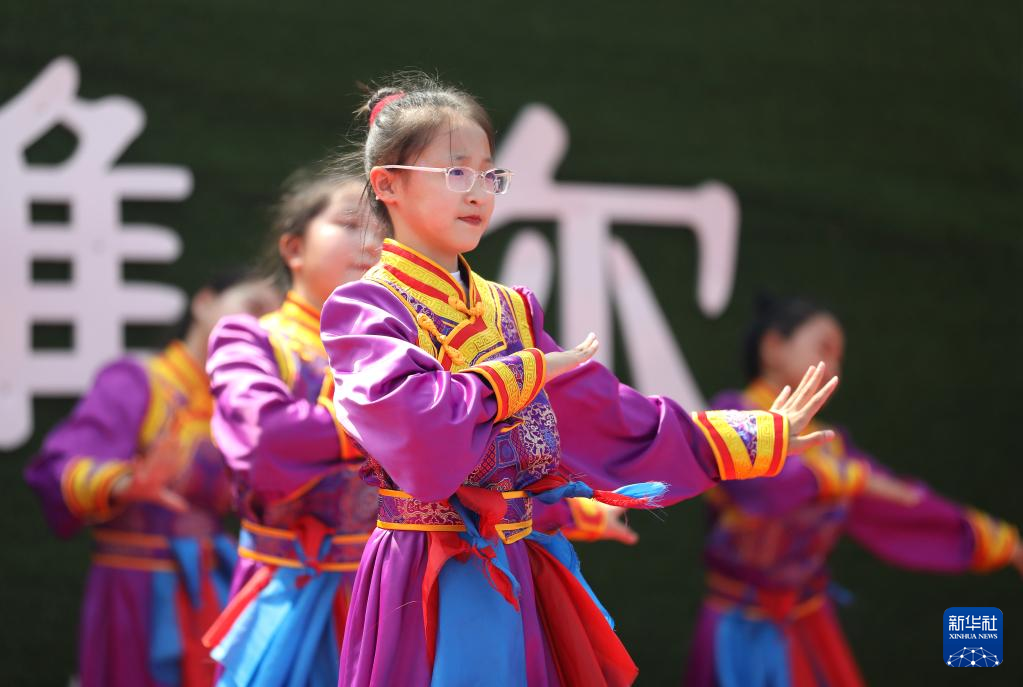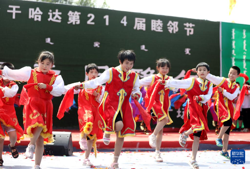 7月26日,查干哈达村的小朋友在睦邻节上表演舞蹈。新华社记者姚剑锋/摄