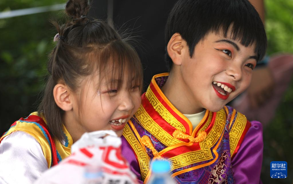 7月26日在查干哈达村的睦邻节上拍摄的两名小朋友。新华社记者姚剑锋/摄