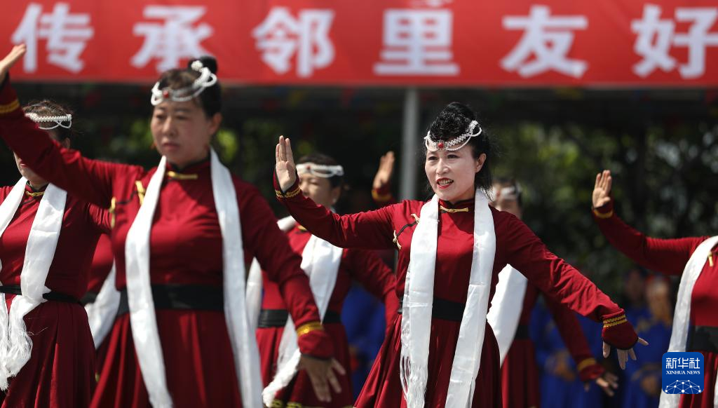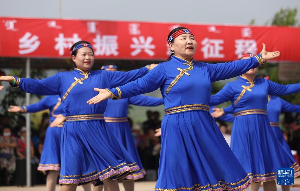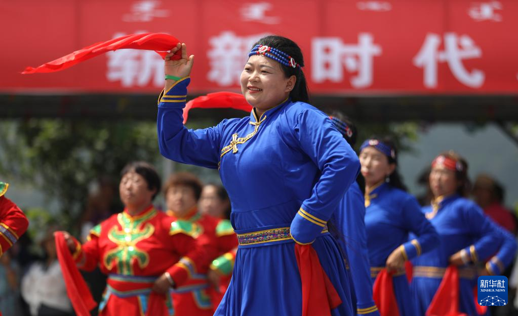 7月26日,查干哈达村村民在睦邻节上表演舞蹈。新华社记者姚剑锋/摄