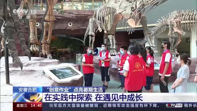 今年暑假,不少学校还鼓励孩子们深入博物馆、美术馆、工厂、社区等地,在实践中探索知识、在遇见中收获成长。合肥市五十中学天鹅湖教育集团天鹅湖校区的同学们就走进了安徽地质博物馆,在这里,同学们不仅要用绘画、模型、小剧场等形式展示他们眼中的恐龙世界,还要带着这张任务清单,做好相应资料的记录和整理。
