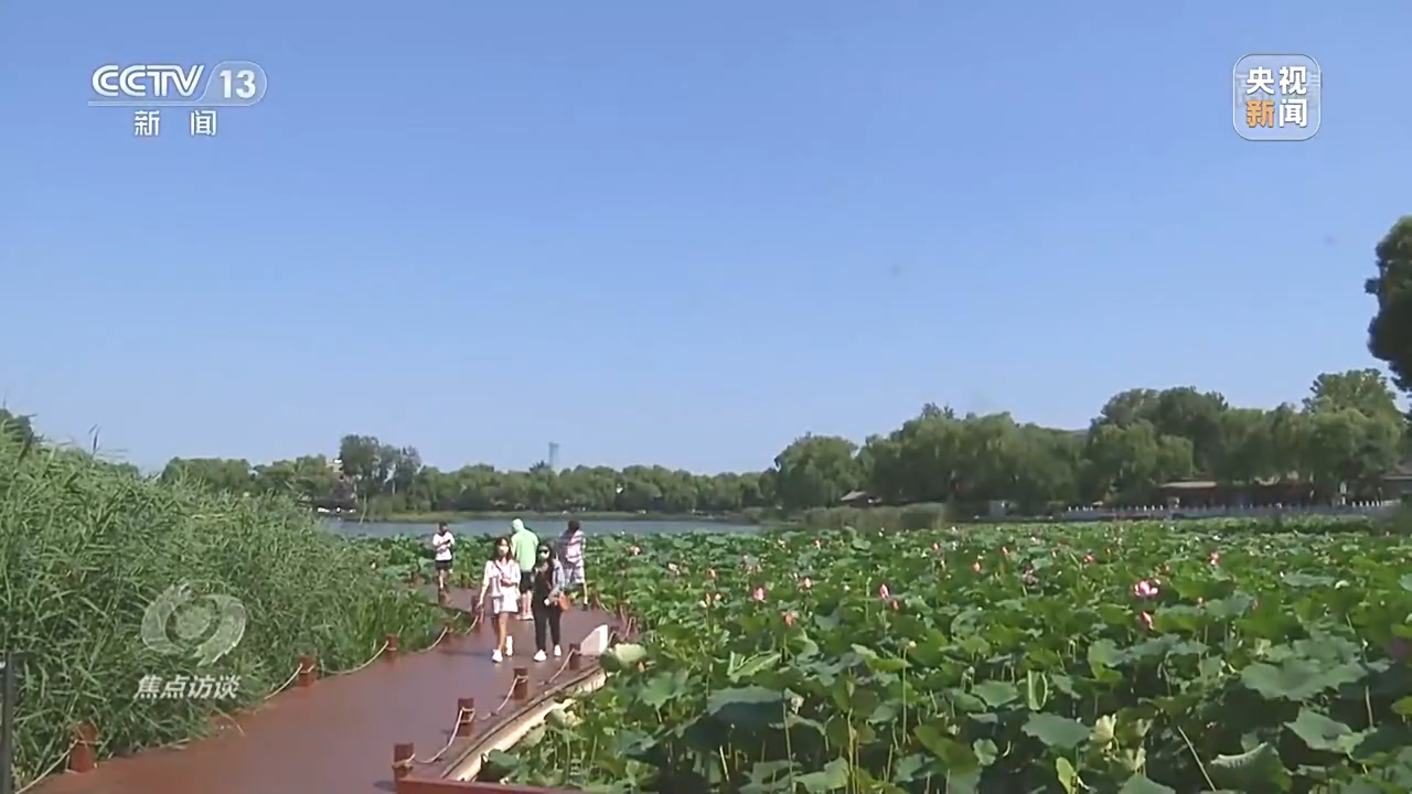西海湿地公园是大运河文化带的重点建设内容之一,从元代开始这里就叫积水潭,是京杭大运河的北端点,有着丰富的大运河文化遗存。可在2018年之前,西海湿地公园周边不少违章建筑圈占河岸,水质恶化。为了让这片水域重焕生机,打造有历史温度的景观,2018年5月,北京市西城区对这里的违法建筑进行拆除,把环湖道路全部打通,修建1300米的环湖观景栈道。