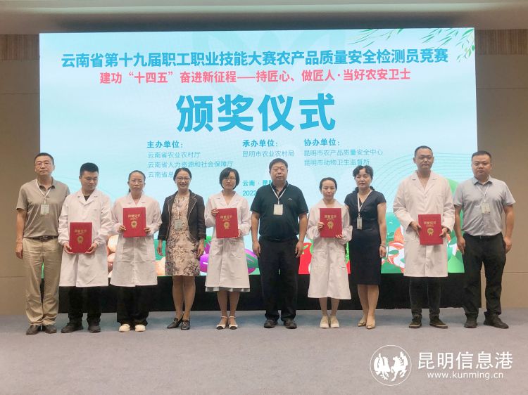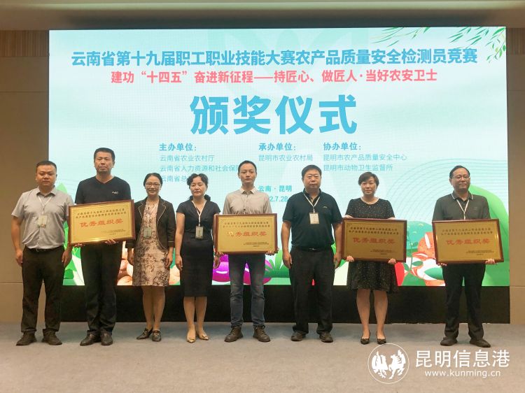 在此次比赛中,昆明市充分展示了农产品质量安全检测水平和能力,昆明市农业农村局张任华获得“云南省农产品质量安全检测员技术状元”称号,昆明市农业农村局贺玲、李惠琼获得“云南省农产品质量安全检测员技术能手”称号,昆明市农业农村局获得“优秀组织奖”。