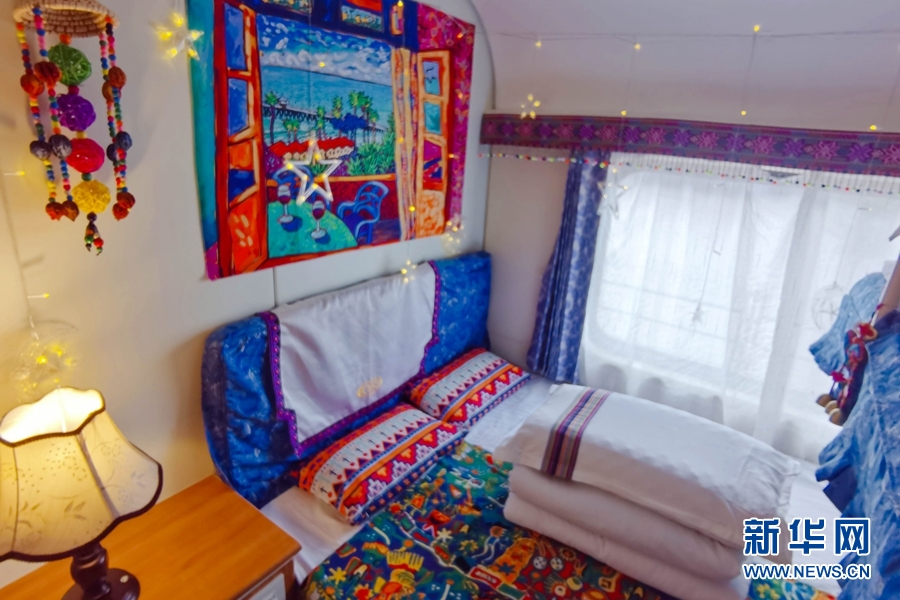 双层旅游列车内,民族风情浓郁的家庭包房(摄于7月20日)。新华网发(赵熠/摄)