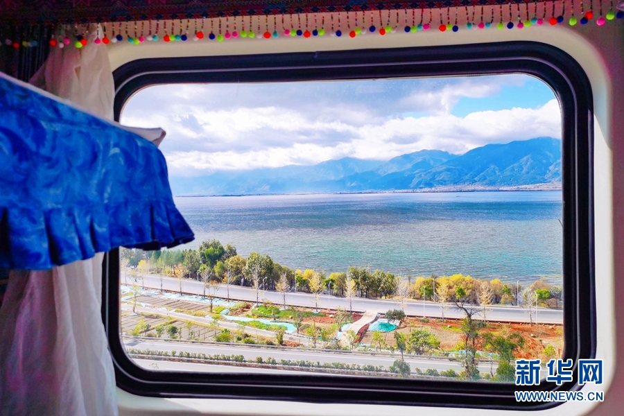 乘坐双层旅游列车,苍洱风光尽收眼底(摄于7月20日)。新华网发(段倬/摄)