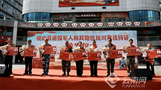 日前,文山壮族苗族自治州砚山县向首批共9名退役军人和其他优抚对象发放优待证。自砚山县退役军人服务中心启动优待证申领工作以来,以“应办尽办”“能办尽办”为目标,采取分批的方式有序启动优待证申领工作,积极为符合《退役军人、其他优抚对象优待证管理证办法(试行)》条件的退役军人和烈士遗属、因公牺牲军人遗属、病故军人遗属办理优待证。