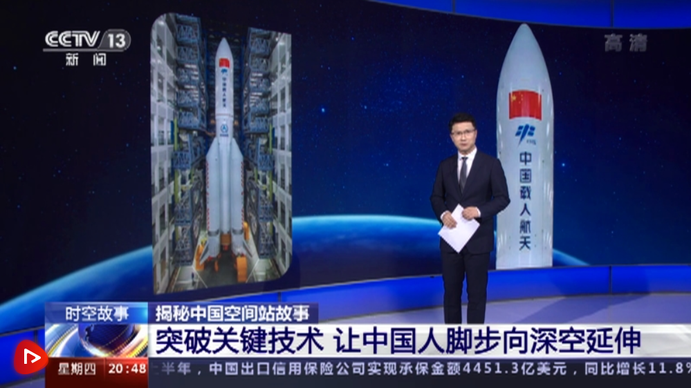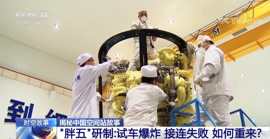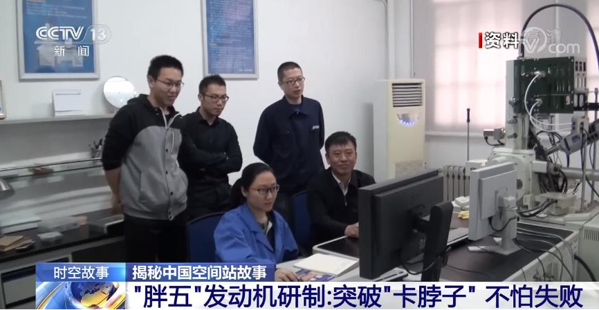大屏幕上的这张照片,是这次发射问天实验舱的长征五号B运载火箭,主要承担我国空间站舱段的发射任务,它也是我国近地轨道运载能力最大的运载火箭。它强大的动力来源就是发动机。发动机是火箭的“心脏”,它也是火箭技术含量最高、难度最大的部件之一。长五运载火箭采用的是液氢液氧,以及液氧煤油作为燃料,这也是当今世界航天发射的主流技术,它也是一个国家成为航天强国的标志之一。今天的揭秘中国空间站故事,我们一起来看一看“胖五”火箭发动机研制过程当中,它的团队是如何破解材料研制等“卡脖子”难题,一次次从头再来。