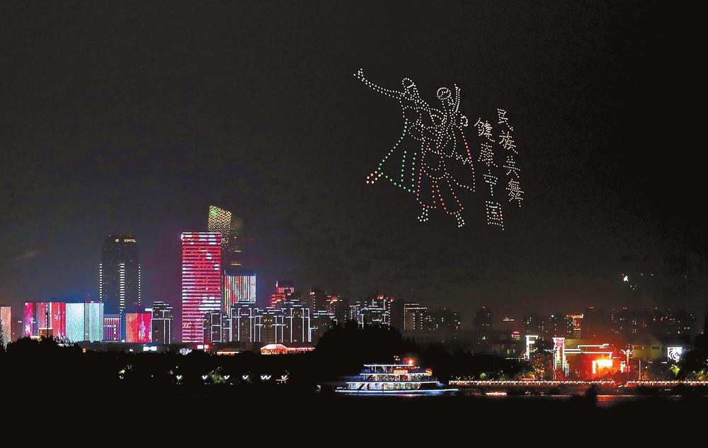 7月29日晚,滇池度假区在滇池大坝举行“点亮滇池·圆梦春城”千架无人机空中主题表演秀。