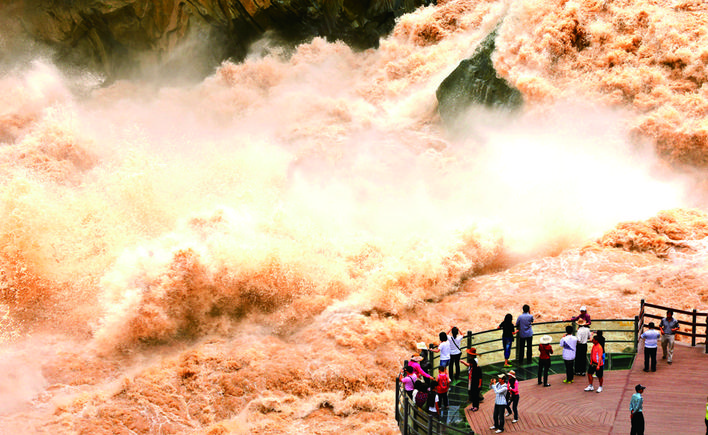万里奔涌而来的金沙江水,在这里转弯然后呼啸而过,在峡谷之中一切变得虚无空旷,江水撞击着江水翻涌起白浪,仿佛云朵也坠入了峡谷深处。
