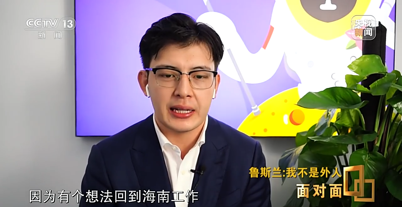 鲁斯兰:刚开始的时候我是专员,现在已经升级到高级主管、全球新闻官,过去三年工作我觉得非常愉快,海南这个地方现在越来越国际化、全球化,那么多的国际国内企业在这边投资,越来越多的人才汇聚在海南。当然我们为这些企业服务的时候,我本人也能够学到很多的业务,我也认识了好多的朋友。