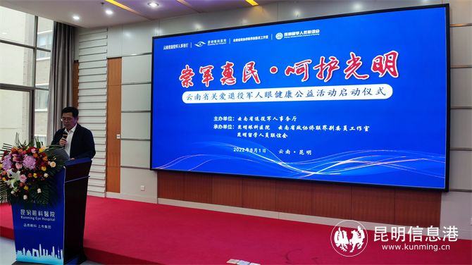 云南省退役军人事务厅党组成员、副厅长张永明出席仪式并讲话。希玛眼科集团、昆明眼科医院相关领导,退役军人和其他优抚对象代表,以及相关单位的负责同志、职工代表参加启动仪式。双方现场签署了拥军优抚合作协议,举行了千名退役军人光明行第一批救助代表揭纱仪式。