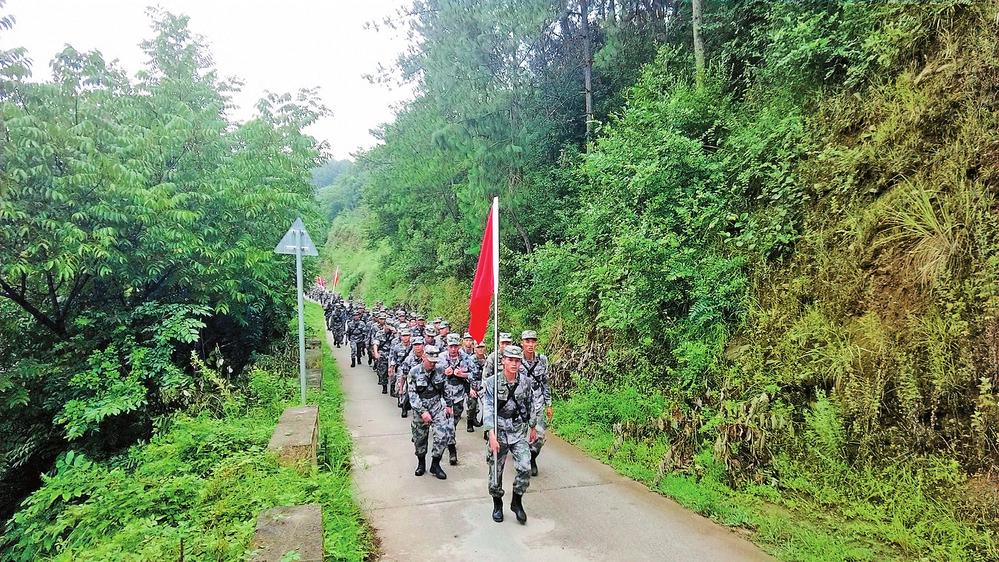 陆军第75集团军某旅舟桥营官兵重走长征路。