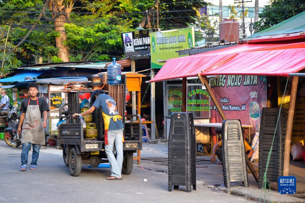 8月1日,商贩在印度尼西亚首都雅加达街头搭建临时摊位。新华社记者 徐钦/摄