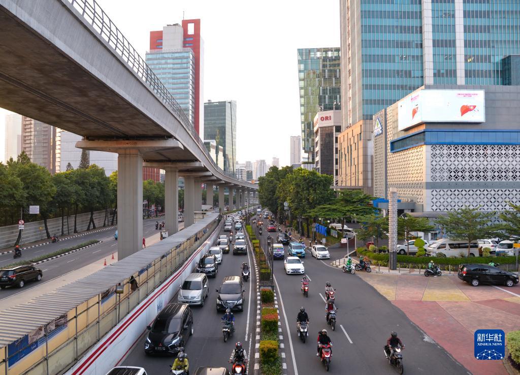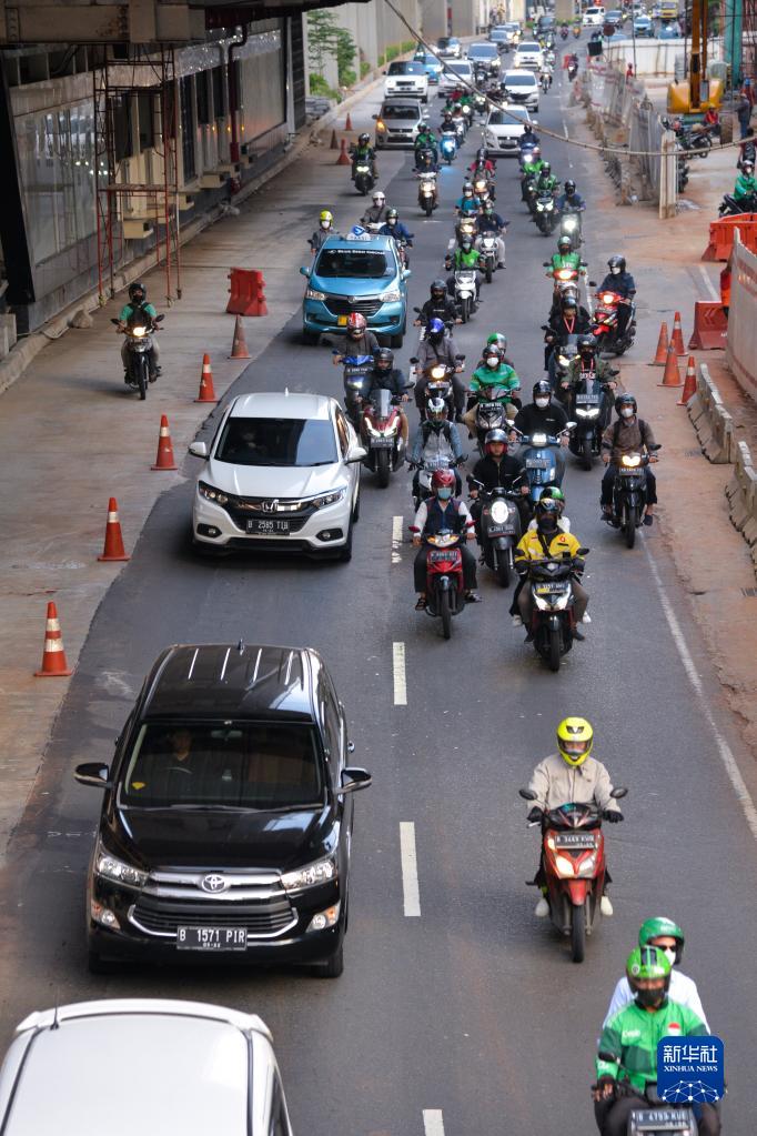 这是8月1日晚高峰时段拍摄的印度尼西亚首都雅加达街头。新华社记者 徐钦/摄