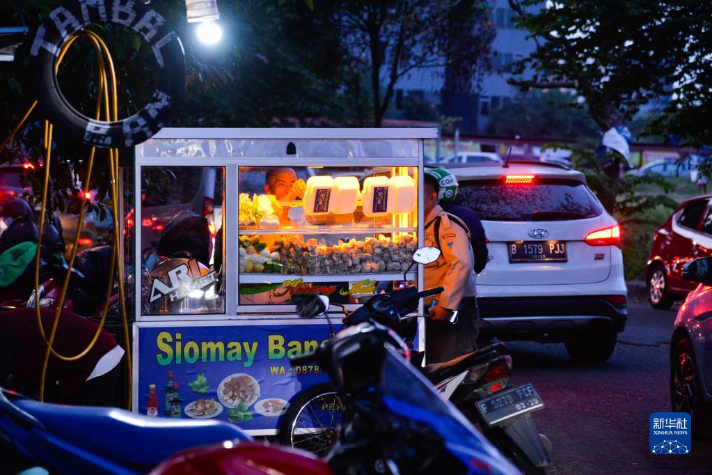 这是8月1日晚拍摄的印度尼西亚首都雅加达街头的小吃摊。新华社记者 徐钦/摄