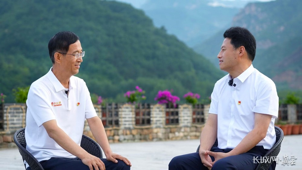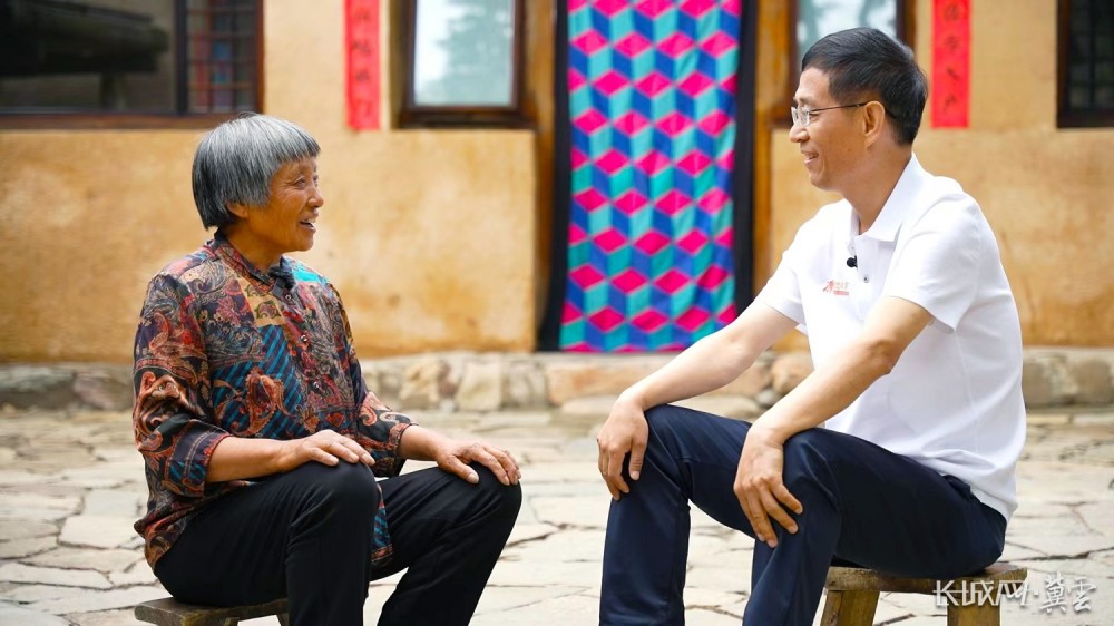中共河北省委党校(河北行政学院)副校(院)长孟庆云(右)与阜平县骆驼湾村村民顾宝青畅谈村庄变化。