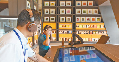 参观者在中国国家版本馆广州分馆进行视听体验。新华社记者刘大伟/摄