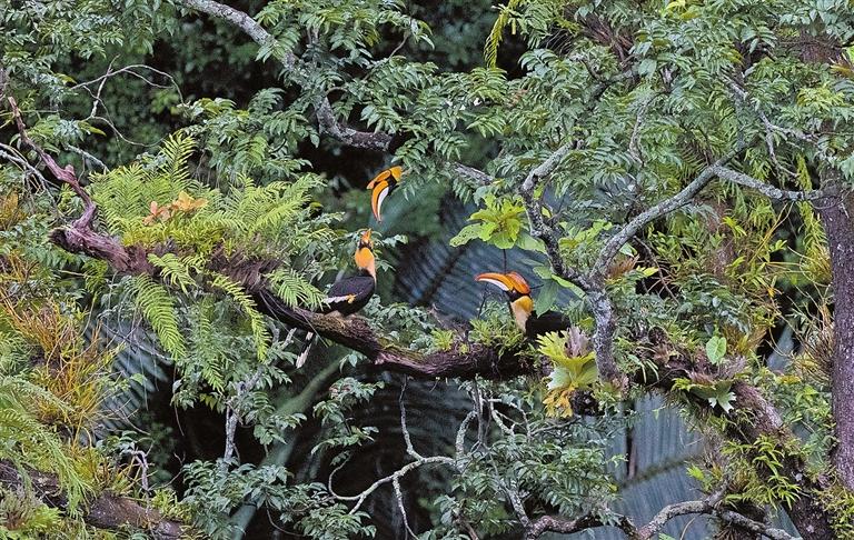 中国雨林最大的鸟一家三口同框。