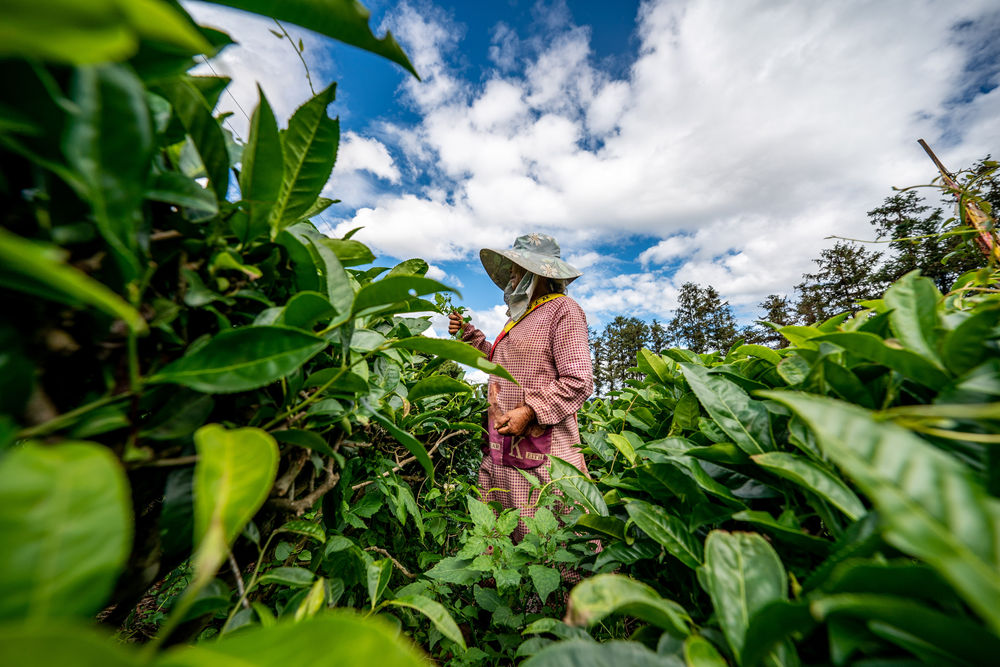 茶农在位于云南省西双版纳傣族自治州勐海县的国家种质大叶茶树资源圃采茶(2022年5月10日摄)。新华社记者江文耀摄