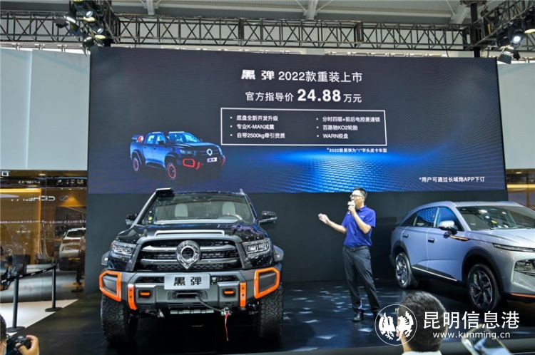 8月4日,第二十三届中国(昆明)国际汽车博览会正式开幕。本届昆明车展,长城炮携乘用休闲、时尚商用两大品类,2022款黑弹、越野炮拖挂版、金刚炮平底货箱版三款车型隆重登场。其中,2022款黑弹焕新上市,为1字头皮卡车型,官方指导价为24.88万元。