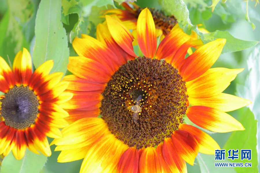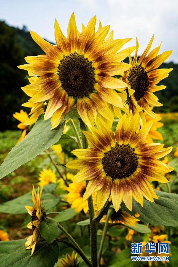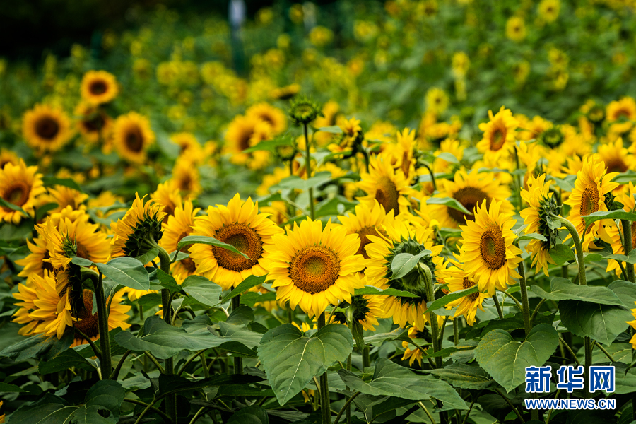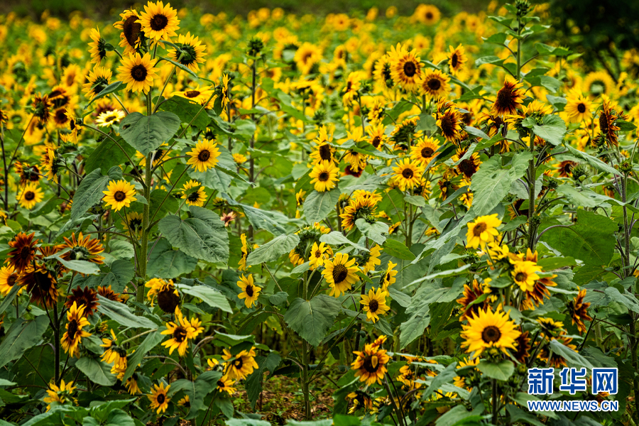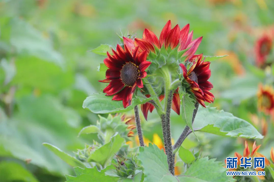 温泉街道彩色向日葵(7月29日摄)。新华网发(安宁市温泉街道供图)