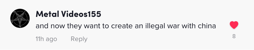 网友Metal Videos155:“不仅如此,现在美国还想要发动一场非法的对华战争。”