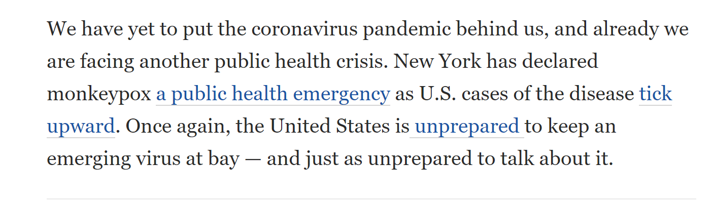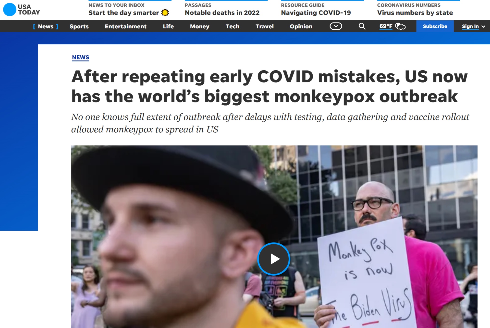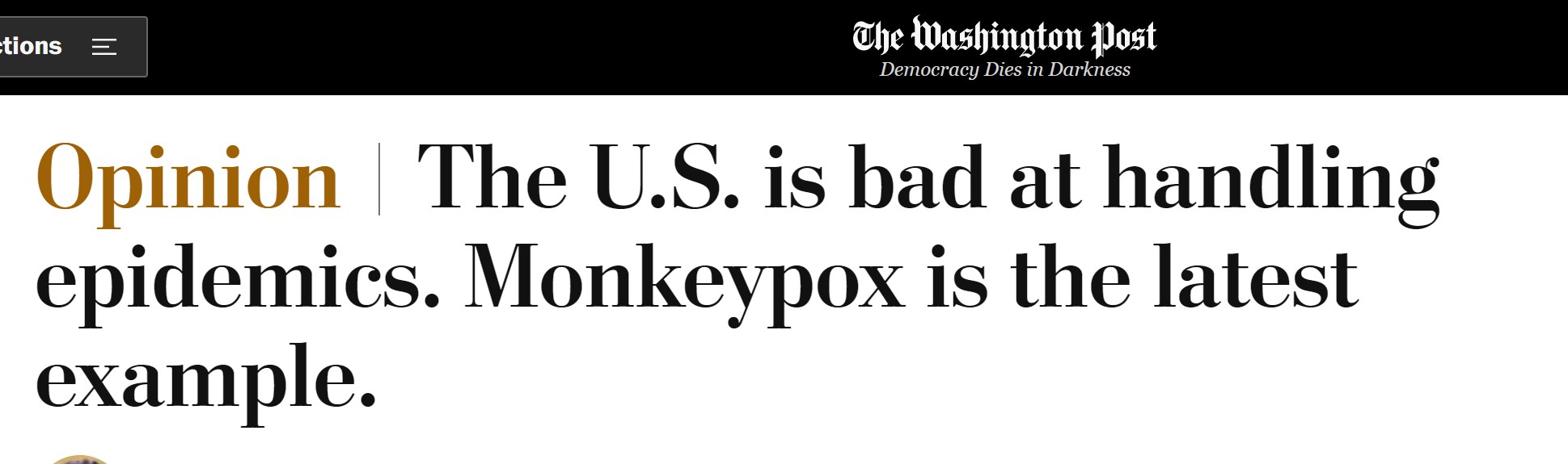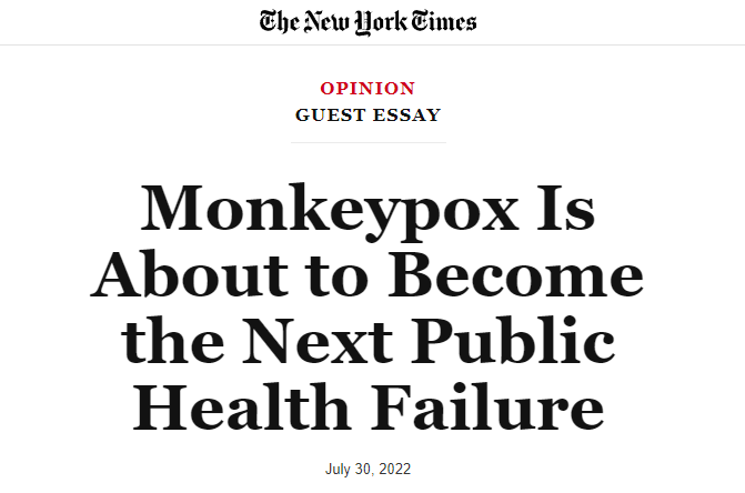 《纽约时报》刊载斯科特·戈特利布专栏文章《猴痘疫情将成为美国公共卫生领域的下一场失败》
