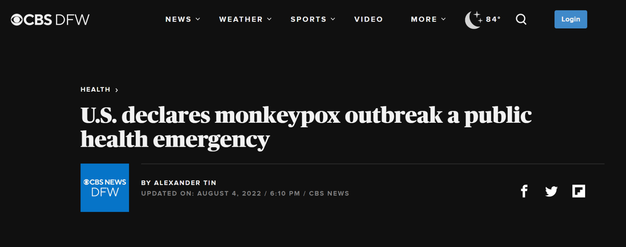 哥伦比亚广播公司:美国宣布猴痘疫情为公共卫生紧急事件