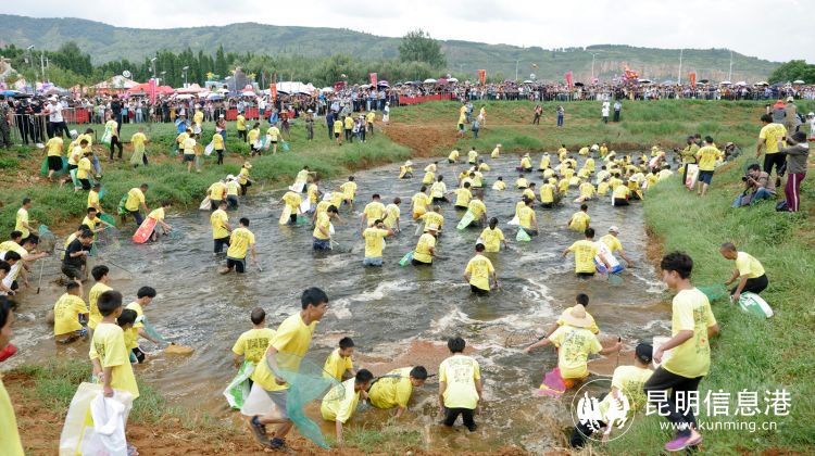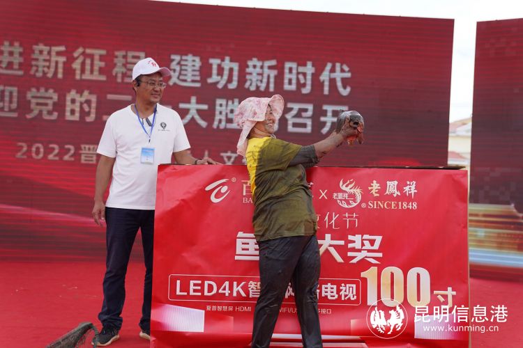昆明信息港讯 记者薛江涛 通讯员和肖敏 李亚南 伊慧敏 8月6日,晋宁区2022年渔人文化节启幕,众多游客相聚昆阳街道旧寨村,参与“浑水摸鱼”,观看非遗秧佬鼓,欢聚篝火晚会。