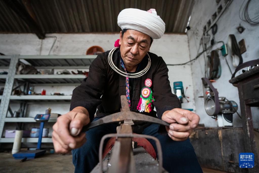 62岁的阿昌族男子项老赛是户撒乡本地人,14岁师从父亲制刀,至今已有四十余年,现在是国家级非物质文化遗产——阿昌族户撒刀锻制技艺国家级代表性传承人。
