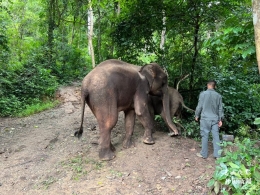 云南省普洱市江城县亚洲象监测员刁发兴:有的时候你看它(小象)刚出生刚学走路的时候,特别有的时候过沟或者上陡坡的时候,大象妈妈会用鼻子慢慢地屁股上赶着走、抬着走,所以说感觉到挺可爱的。