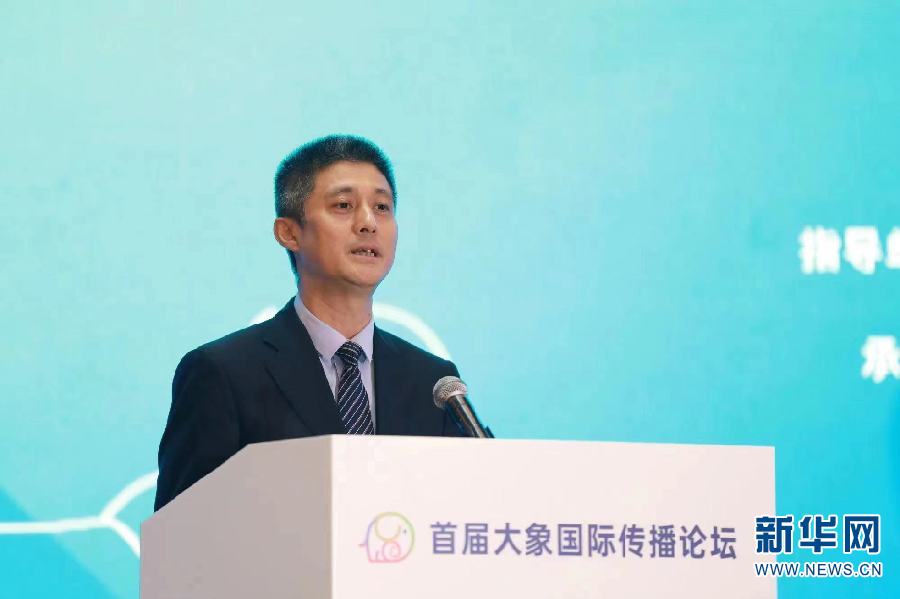 8月8日,首届大象国际传播论坛举办,中共云南省委宣传部副部长、云南省人民政府新闻办公室主任彭斌致辞。新华网 丁凝/摄