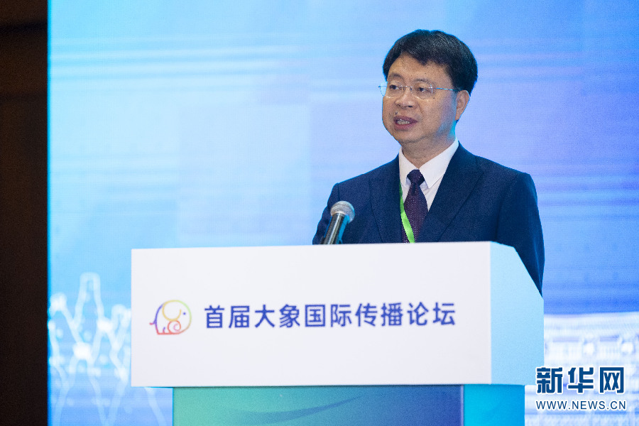 8月8日,首届大象国际传播论坛举行,中国外文局副局长兼总编辑高岸明致辞。新华网发(赵益/摄)